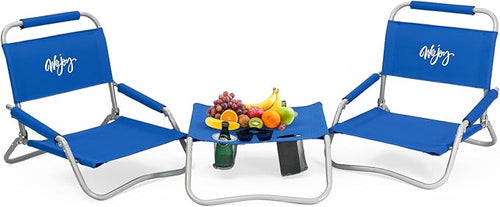 #WEJOY 2 Beach Chairs and Table Set Lightweight & Folding Backpack Beach Chair for Outdoor Beach Lawn Camping Picnic Blue Beach Chairs Set